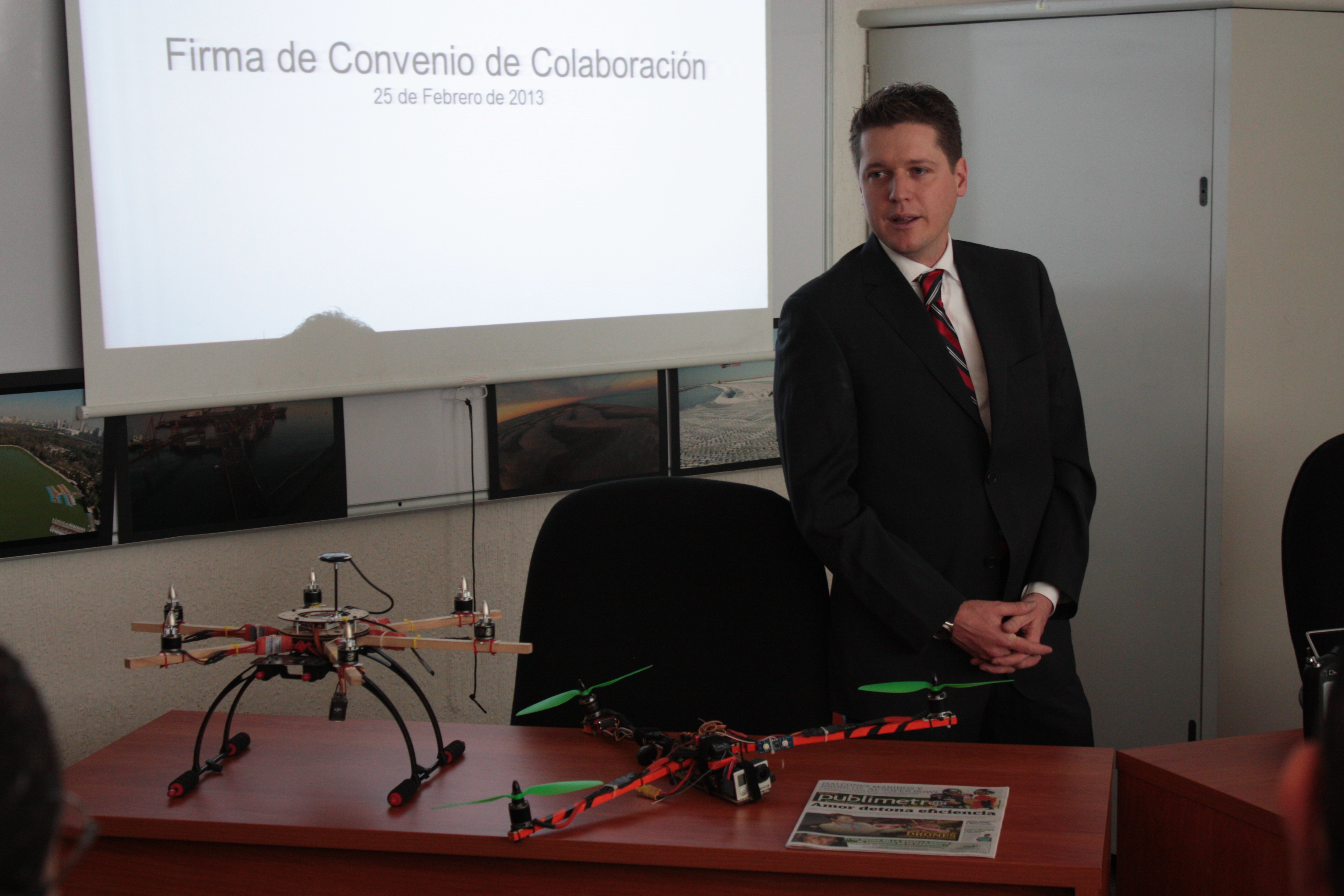 “Los Drones que yo fabrico tienen alcances mucho mayores, mayor potencia, mayor distancia y velocidad entre otras características; por supuesto que tienen aplicabilidad en el Distrito Federal, por ejemplo, hablando de tema de seguridad, un delincuente se brinca una barda, quizá la policía no puede entra a la zona primero porque corre riesgo el policía. El Drón aéreo puede sobrevolar la zona y ubicar al delincuente, se filtra la información a las autoridades para su posible captura”, comenta Pedro Matabuena.