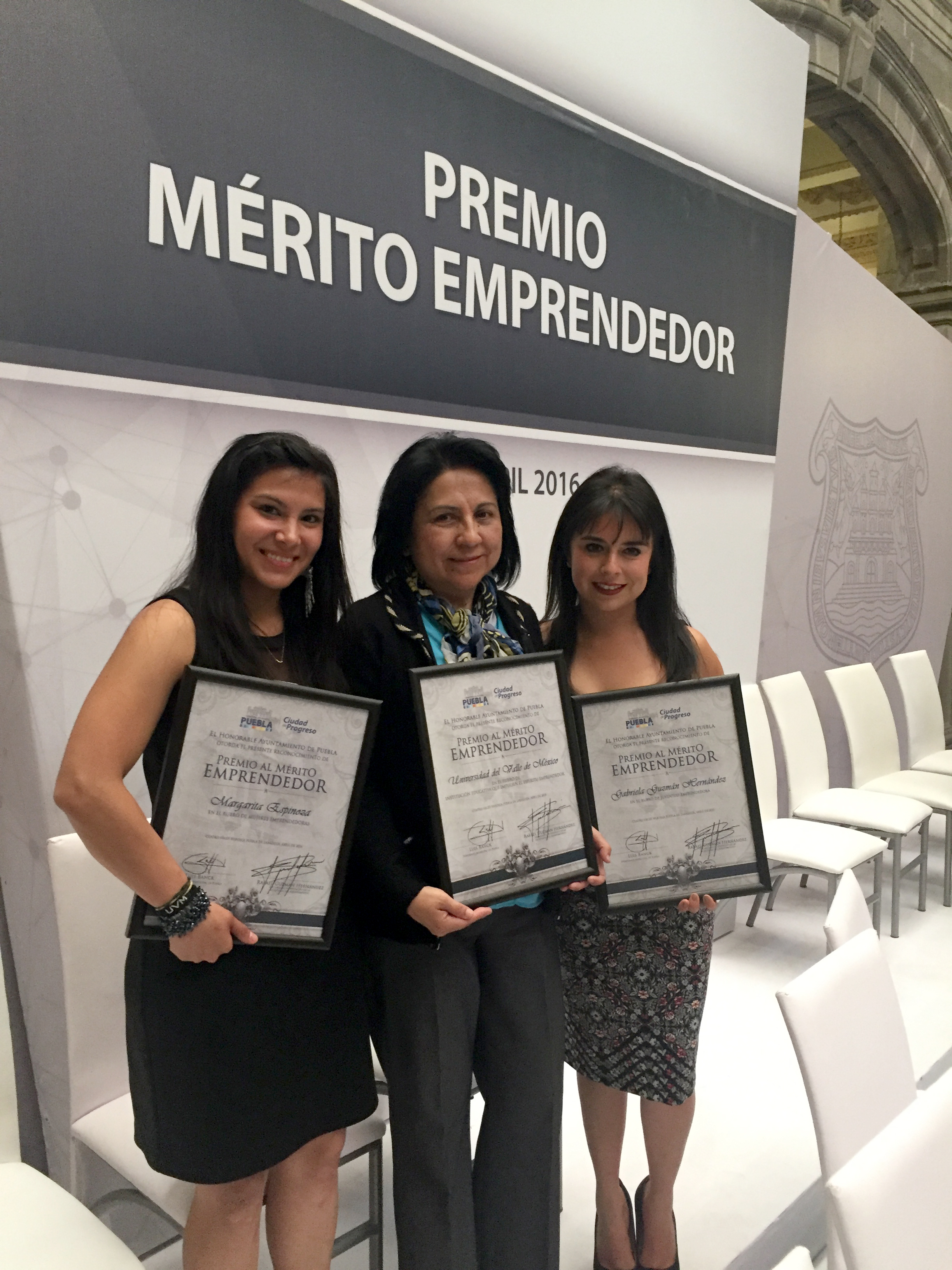 Puebla, Pue., a 27 de abril de 2016.- El Presidente Municipal de Puebla, Luis Banck Serrato, entregó este día el Premio al Mérito Emprendedor Puebla 2016, en el que dos estudiantes de la Universidad del Valle de México Campus Puebla, y la propia incubadora de empresas de la UVM, recibieron la distinción.