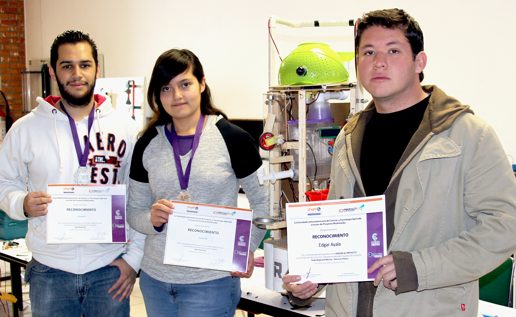 Los estudiantes que participaron en el Robomatrix en Bogotá, son Rebeca Gabriela Valdivia Lechuga, José Daniel Álvarez Vaca y José Manuel Martínez, quienes cursan la carrera de Ingeniería en Mecatrónica en UVM Campus San Luis Potosí.