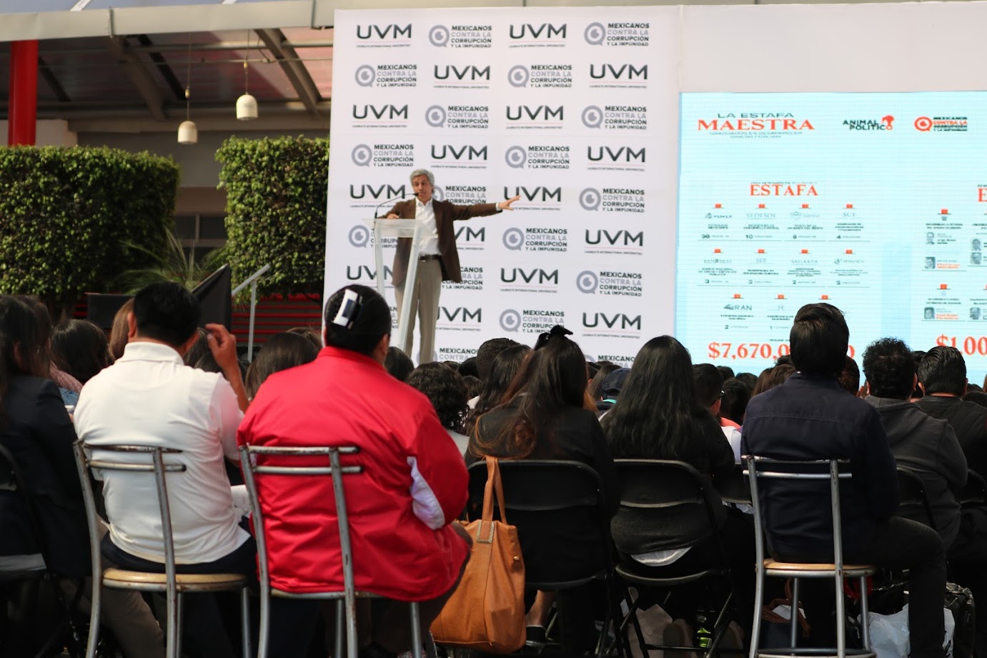 En su alocución, quien también funge como cabeza de Mexicanos contra la corrupción y la impunidad -organización sin fines de lucro, apartidista y comprometida con la lucha para prevenir, denunciar y mitigar los efectos de la corrupción y la impunidad- dijo que es preciso ceder la estafeta a los universitarios y, a informarlos de la problemática que vive nuestro país en materia de corrupción e impunidad pública, privada y social, “estoy hablando con esta generación que está más preparada para transformar al país, con quienes pueden lograr más cambios para México en el futuro”, señaló.