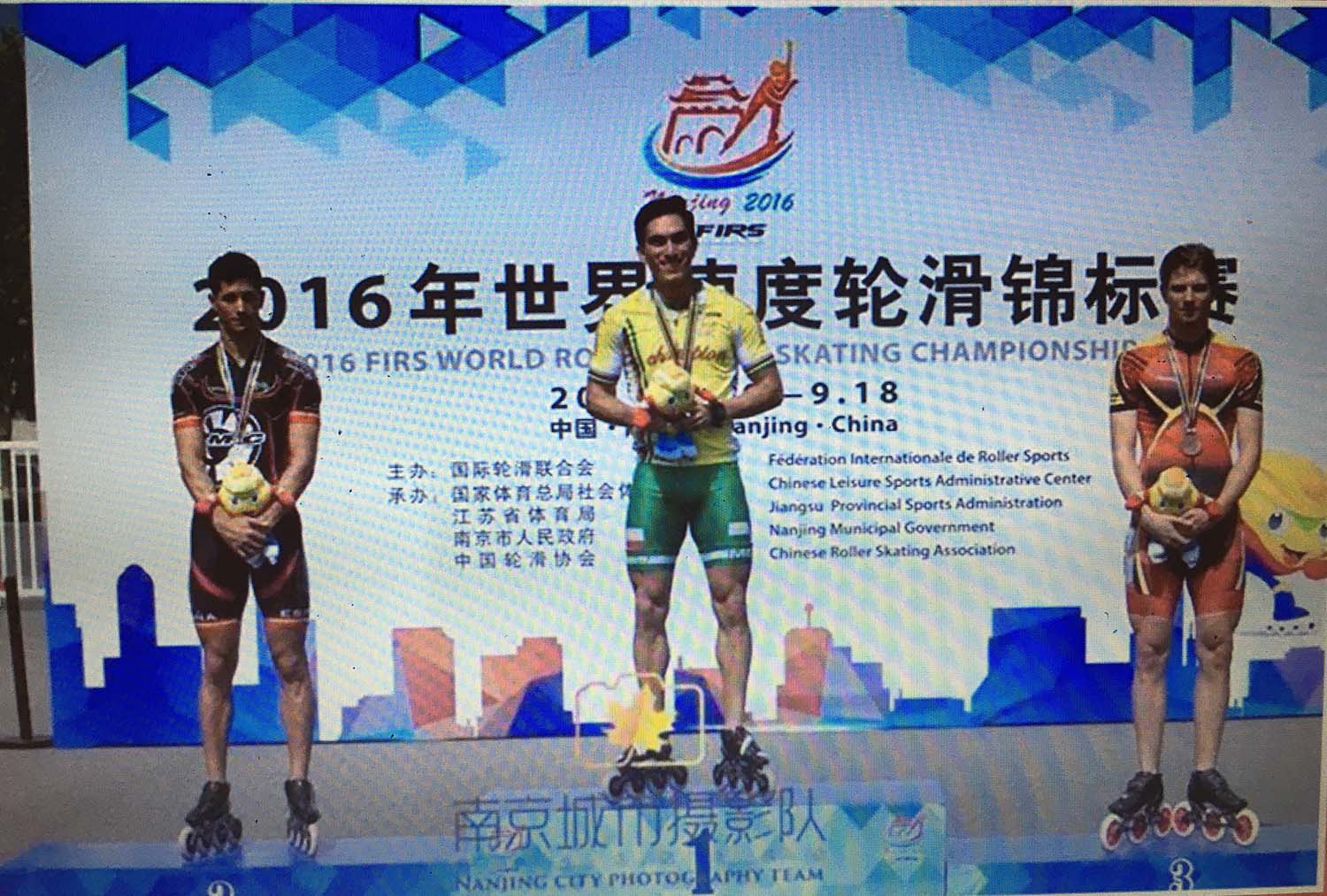 - Jorge Luis tiene medalla de oro del Campeonato mundial de Patinaje de Velocidad sobre Ruedas de Nanjing, China, 2016.