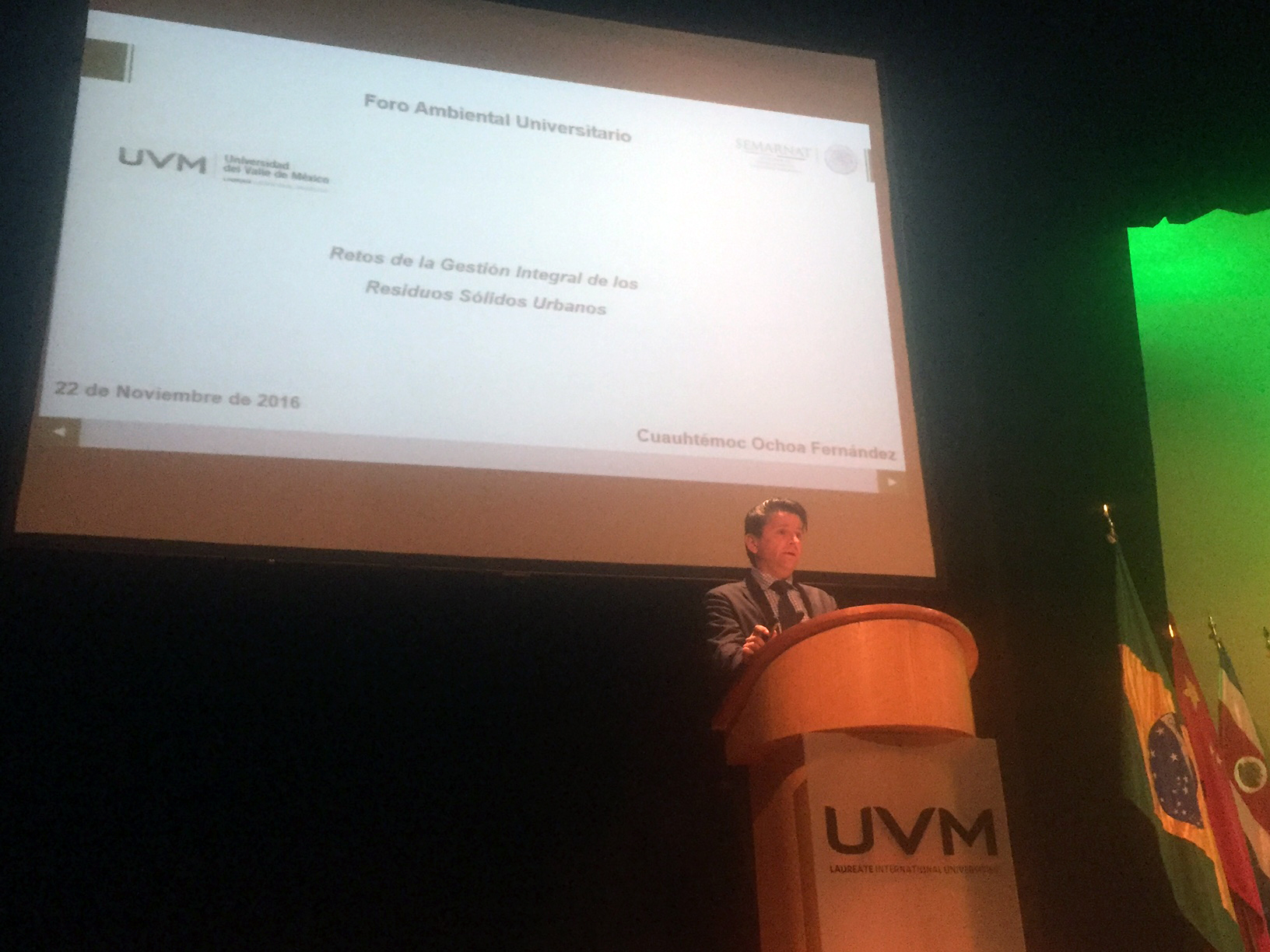 Cuauhtémoc Ochoa Fernández, Sub-Secretario de Fomento y Normatividad Ambiental de la SEMARNAT, dictó la conferencia “Retos de la gestión integral de residuos en México”; al dirigirse a estudiantes, docentes y medios de comunicación en la UVM Campus Zapopan, el funcionario dijo que los contaminantes climáticos de vida corta están presentes en todos los ámbitos de la vida cotidiana, están afectando el sistema climático y la calidad del aire que respiramos. “Es hora de actuar contra estos contaminantes y obtener múltiples beneficios a corto plazo para el bienestar humano”, dijo.