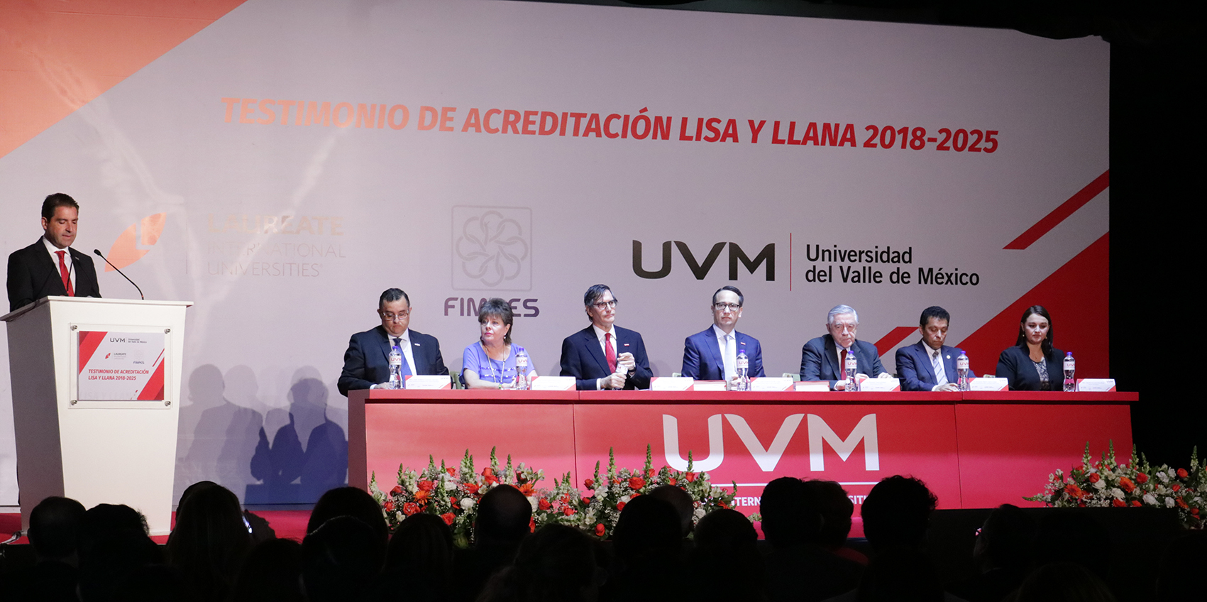La ceremonia de Entrega del Dictamen de Acreditación Institucional 2018-2025, se llevó a cabo este martes en UVM Campus Coyoacán y fue encabezada por el Presidente y Director General de UVM y Laureate México, Mtro. Luis Durán Luján, del Rector Institucional de UVM, Dr. Bernardo González Aréchiga y del Ing. Rodrigo Guerra Botello, Presidente de FIMPES.