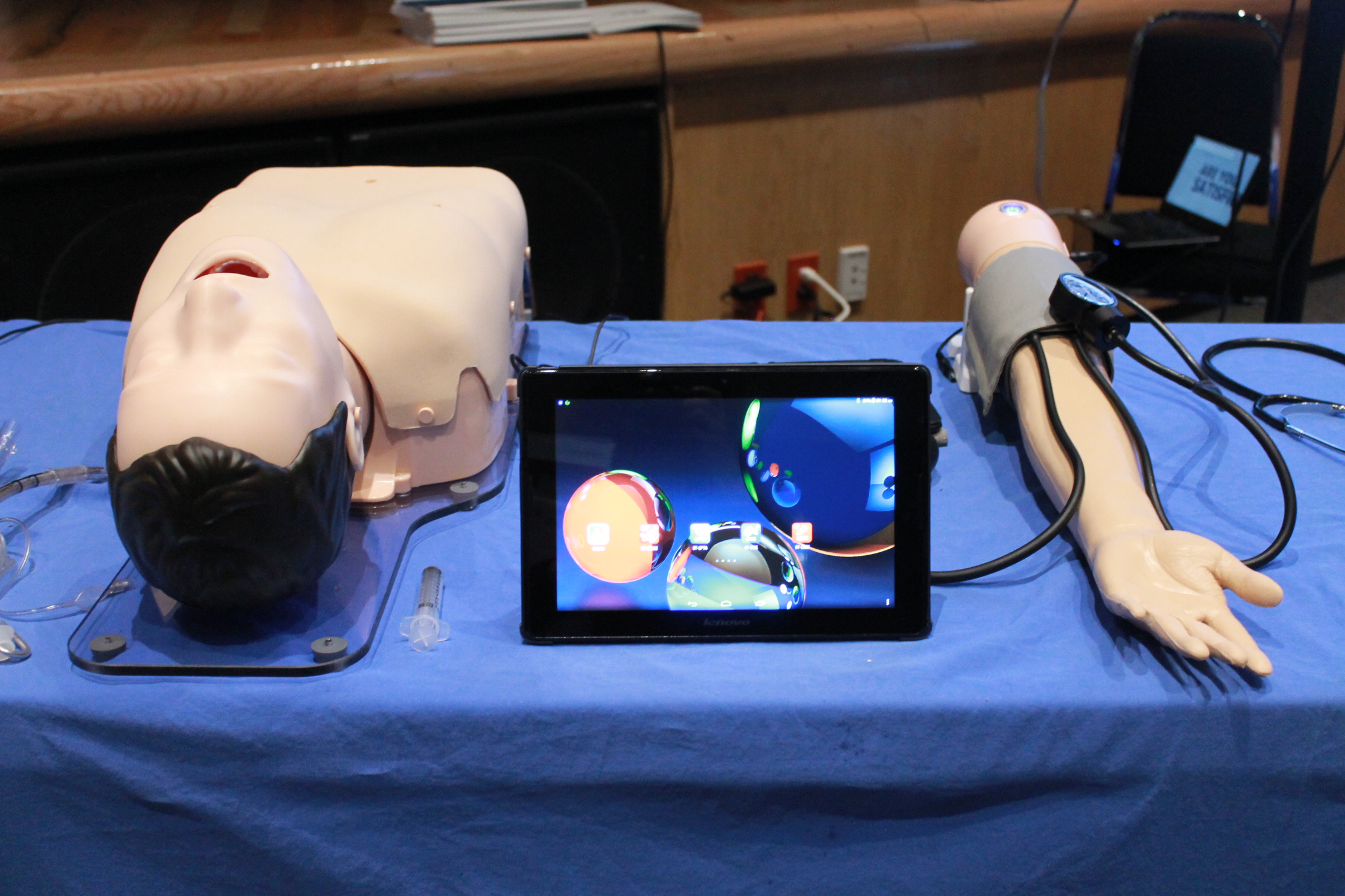 También se mostraron diversos simuladores para atención de cesárea, emergencia para extracción fetal y control de emergencia post parto, así como una plataforma de rehabilitación el cual realiza un registro de electrocardiograma, temperatura, acelerometría, exposición toráxica y monitoreo de signos vitales en fisioterapia, así como simuladores para reanimación cardiopulmonar.
